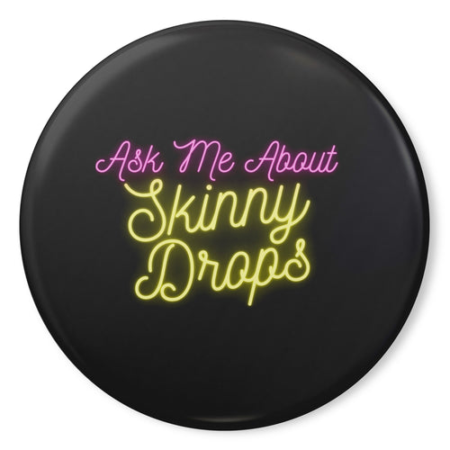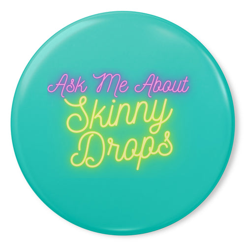 Partner.Co | Ask Me About Skinny Drops Retro Circle Blue | Button Pins