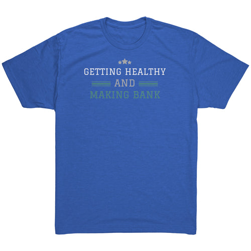 Partner.Co | Getting Healthy and Making Bank Green Logo Back / Ask Me How with Skinny Drops Man Logo| Unisex Triblend Shirt