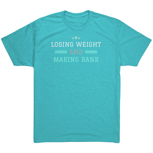 Partner.Co | Losing Weight and Making Bank Mint Logo Back / Ask Me How with Skinny Drops Woman Logo| Unisex Triblend Shirt