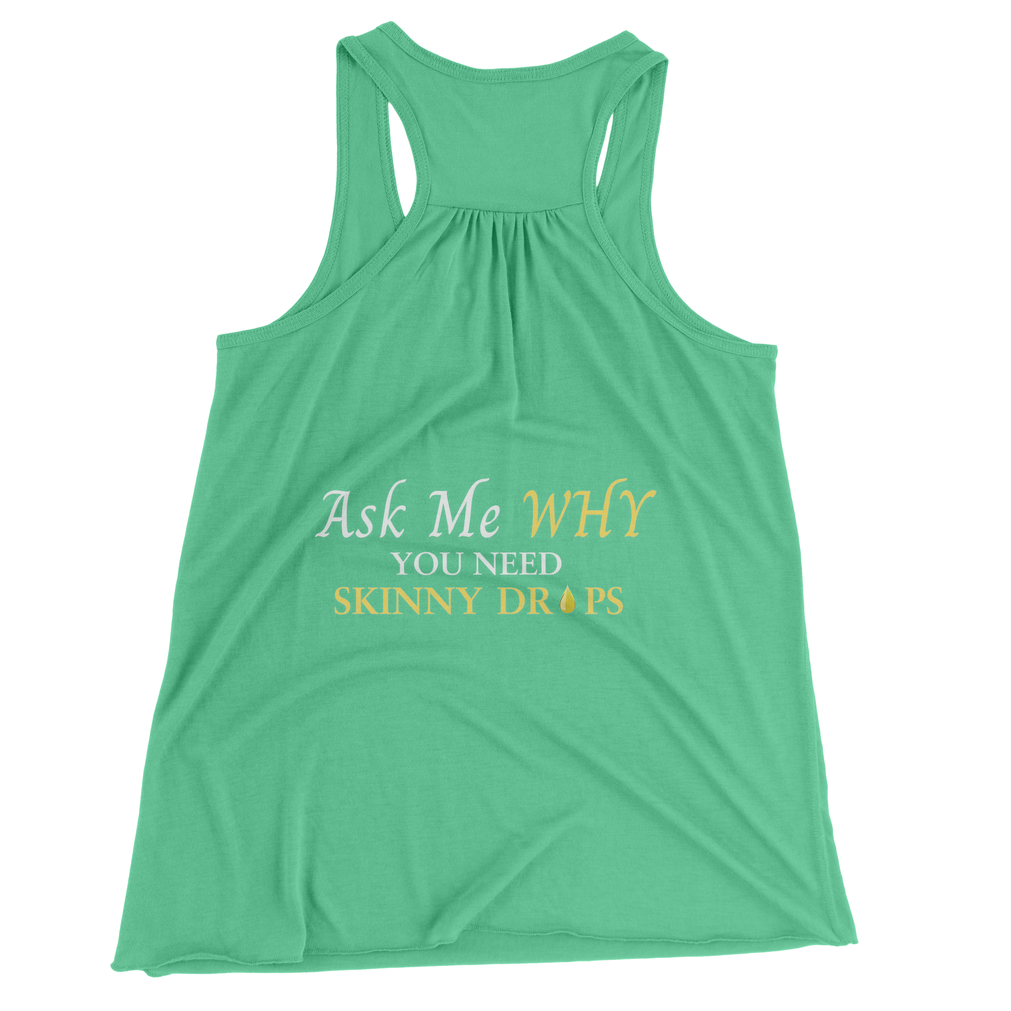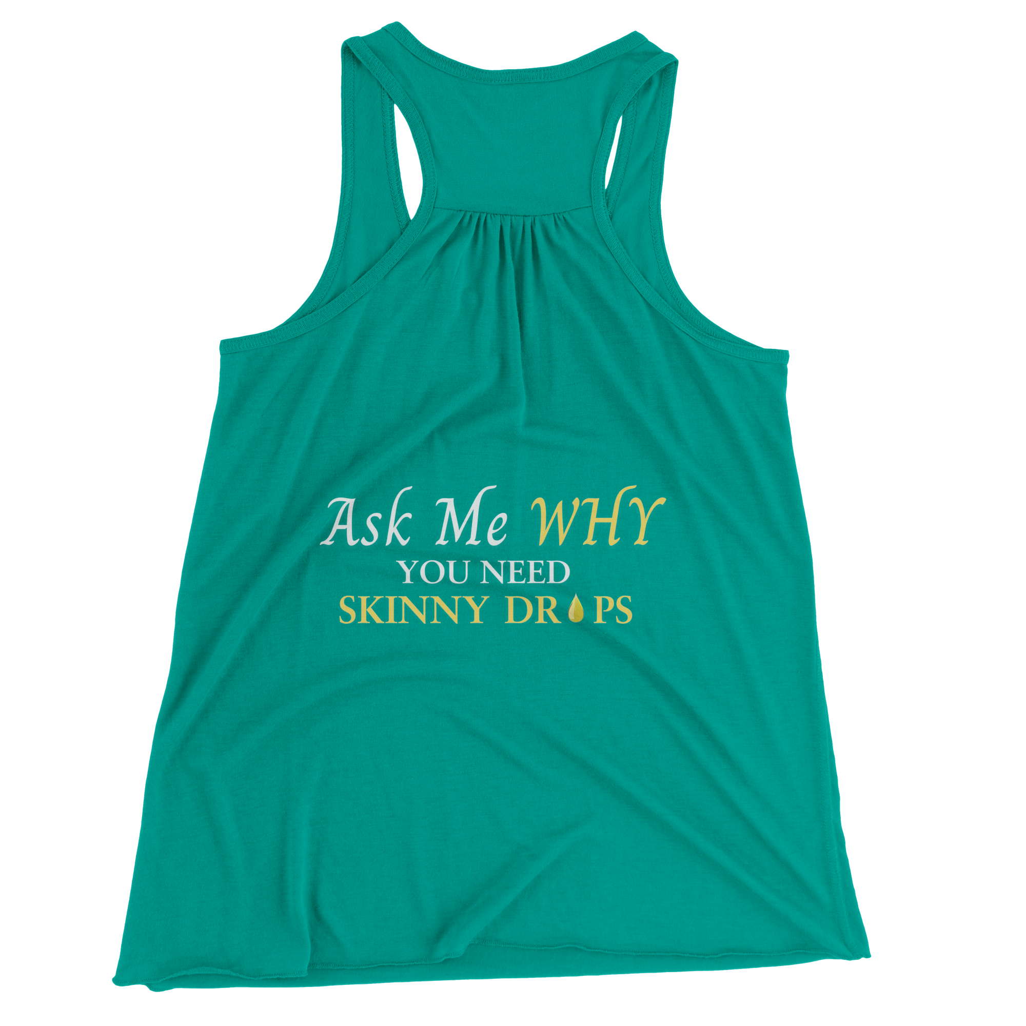 Features: Sideseamed. Relaxed, drapy fit. Merrowed bottom hem. Sheering at racerback seam