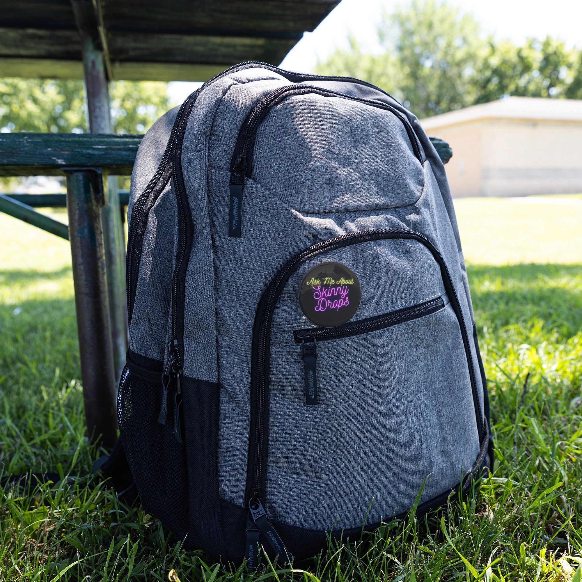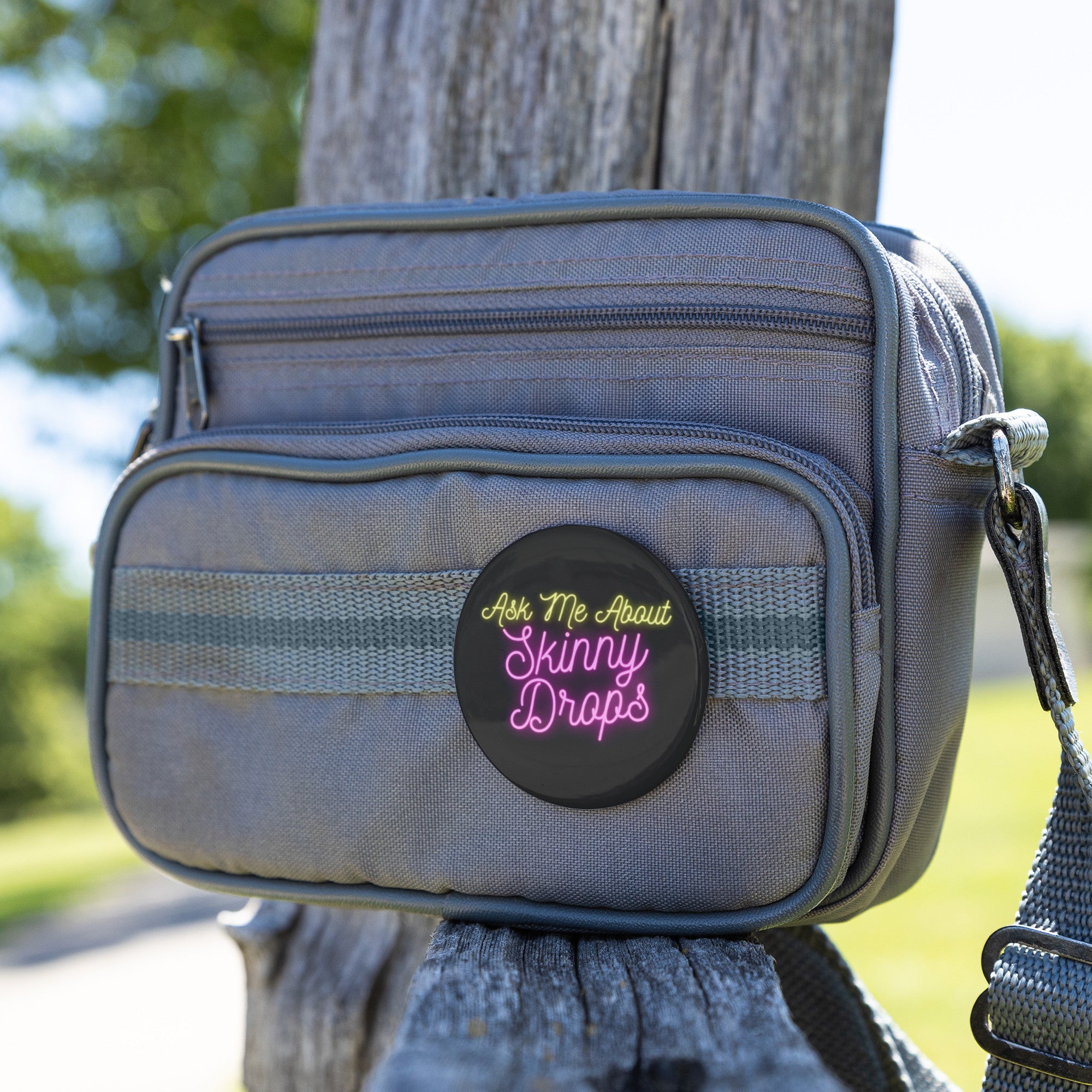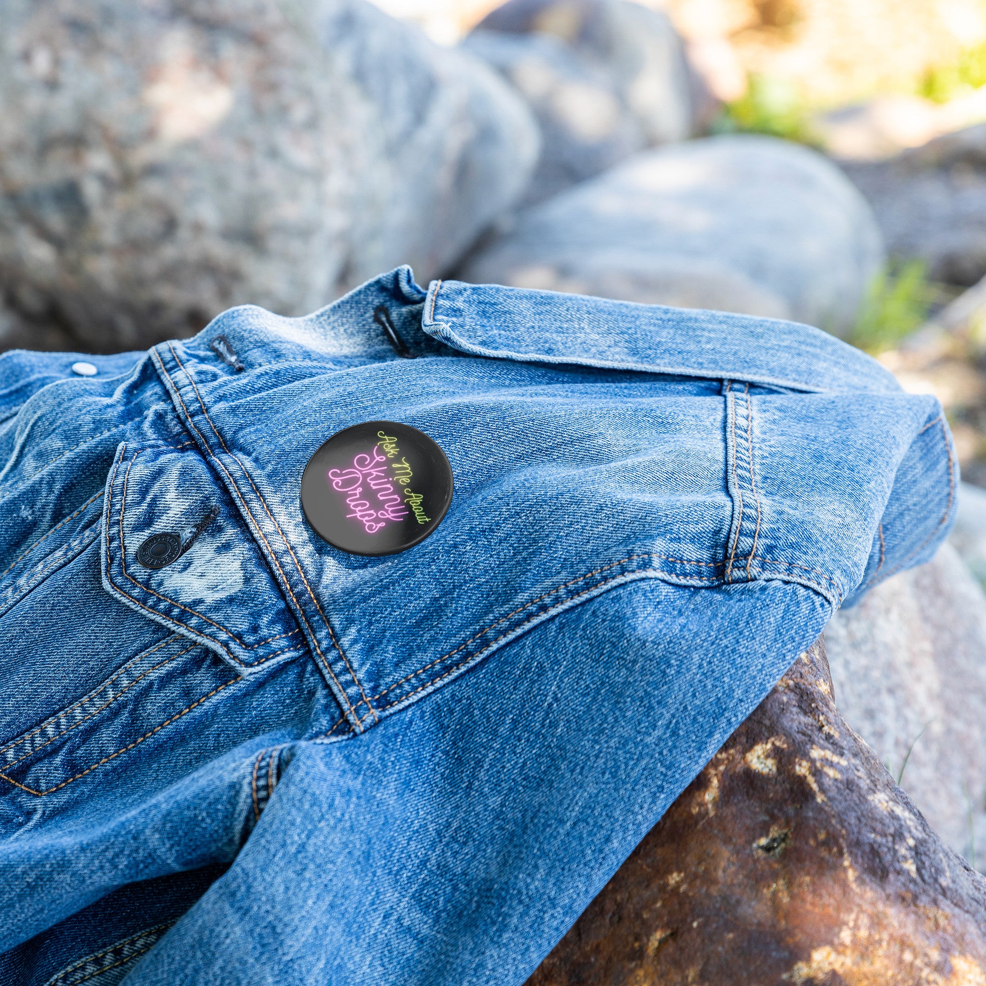 Partner.Co | Ask Me About Skinny Drops Neon Logo Black | Button Pins