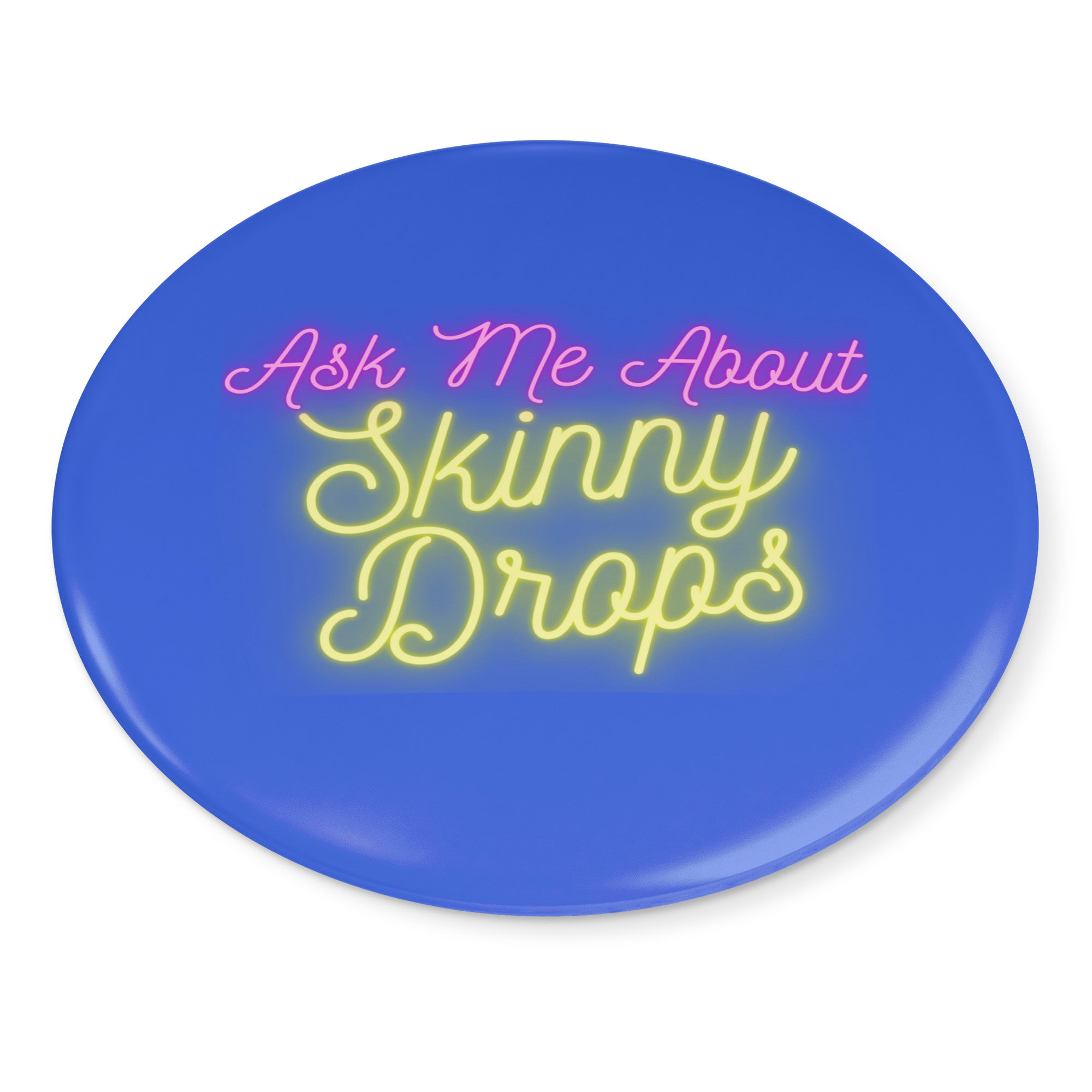 Partner.Co | Ask Me About Skinny Drops Yellow Neon Logo Royal Blue | Button Pins