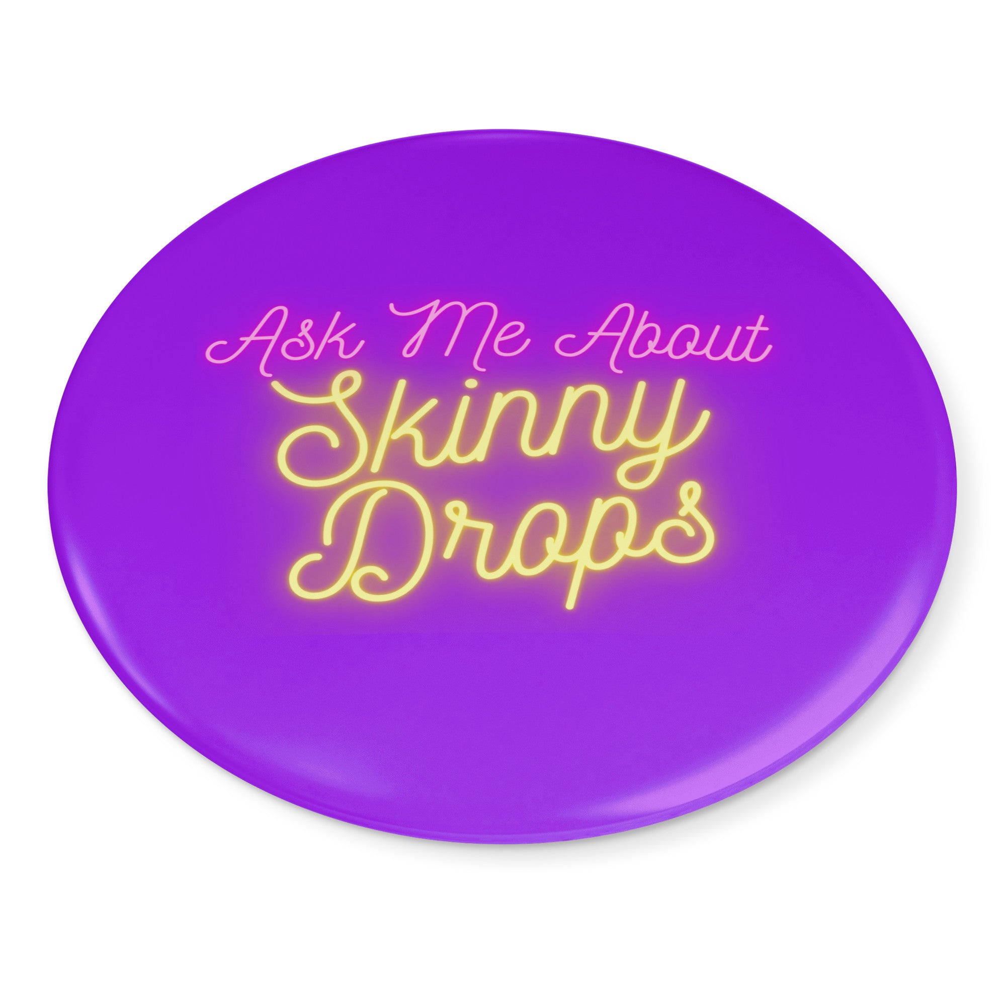 Partner.Co | Ask Me About Skinny Drops Neon Yellow Logo Purple | Button Pins