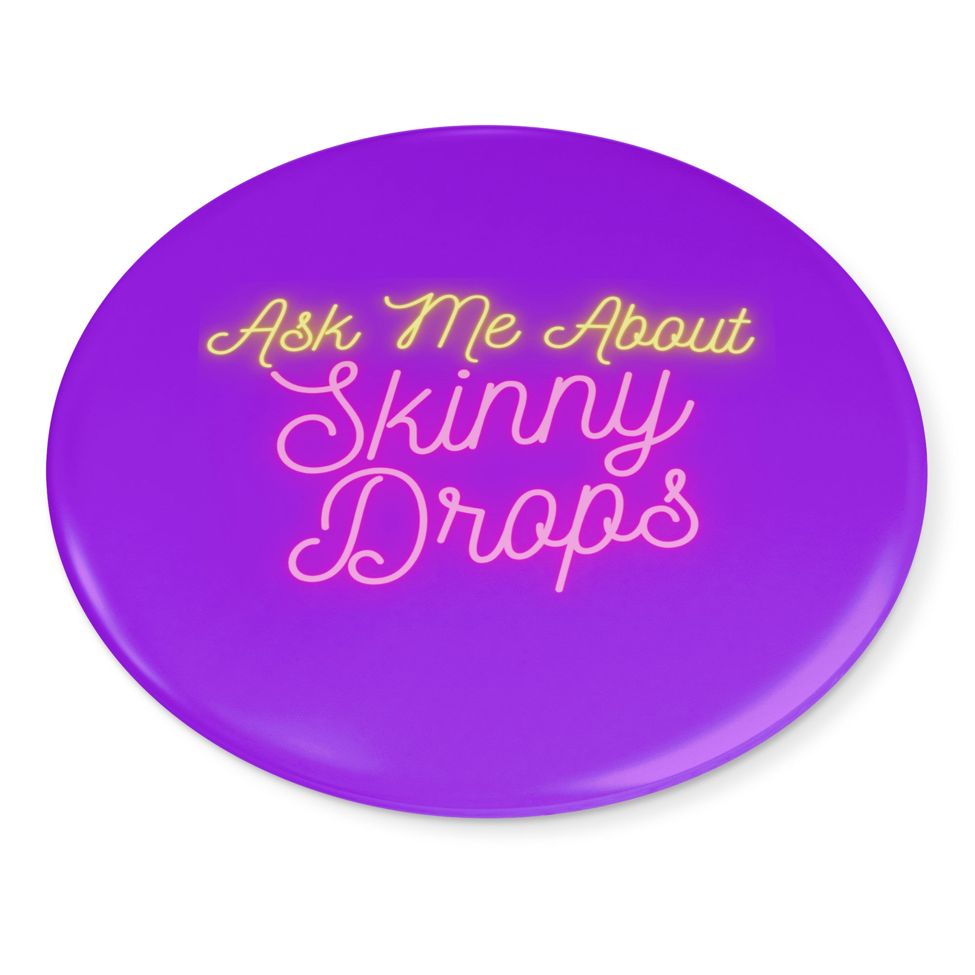 Partner.Co | Ask Me About Skinny Drops Neon Logo Purple | Button Pins