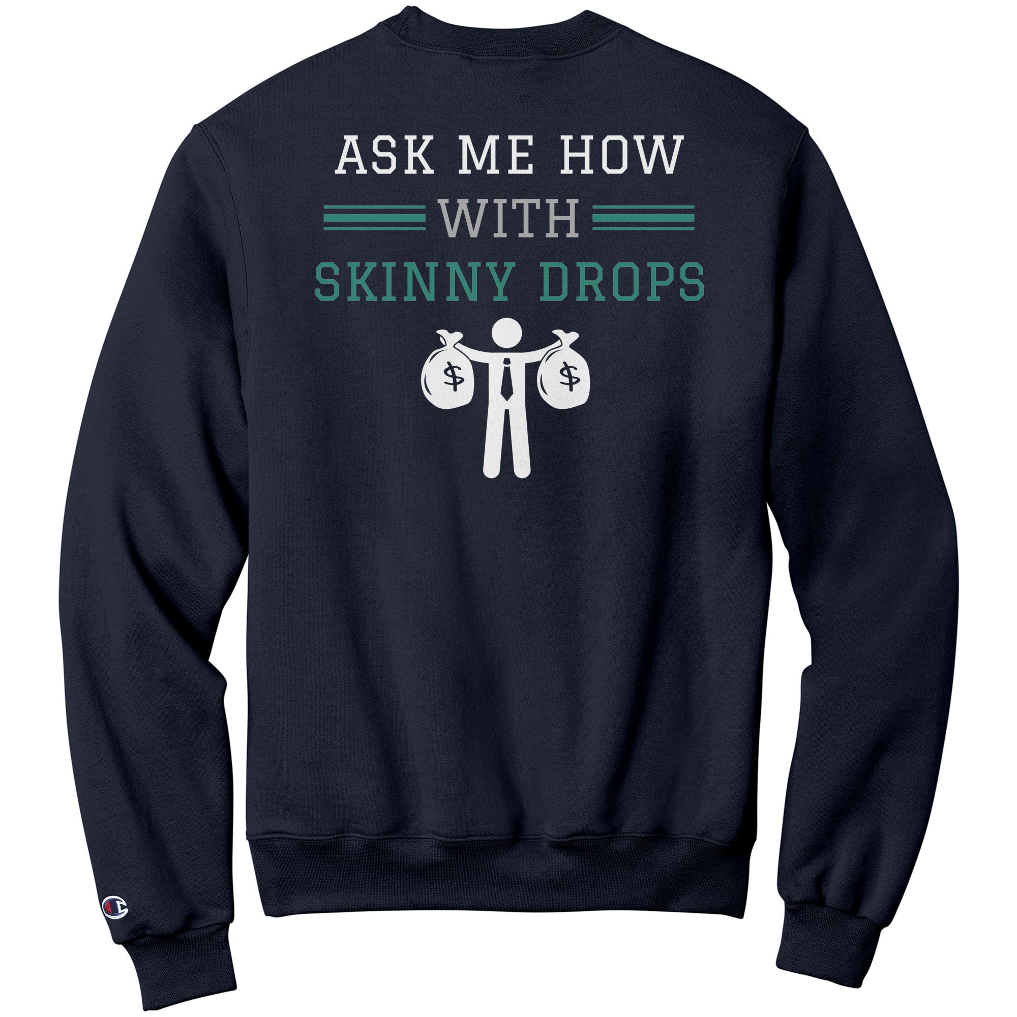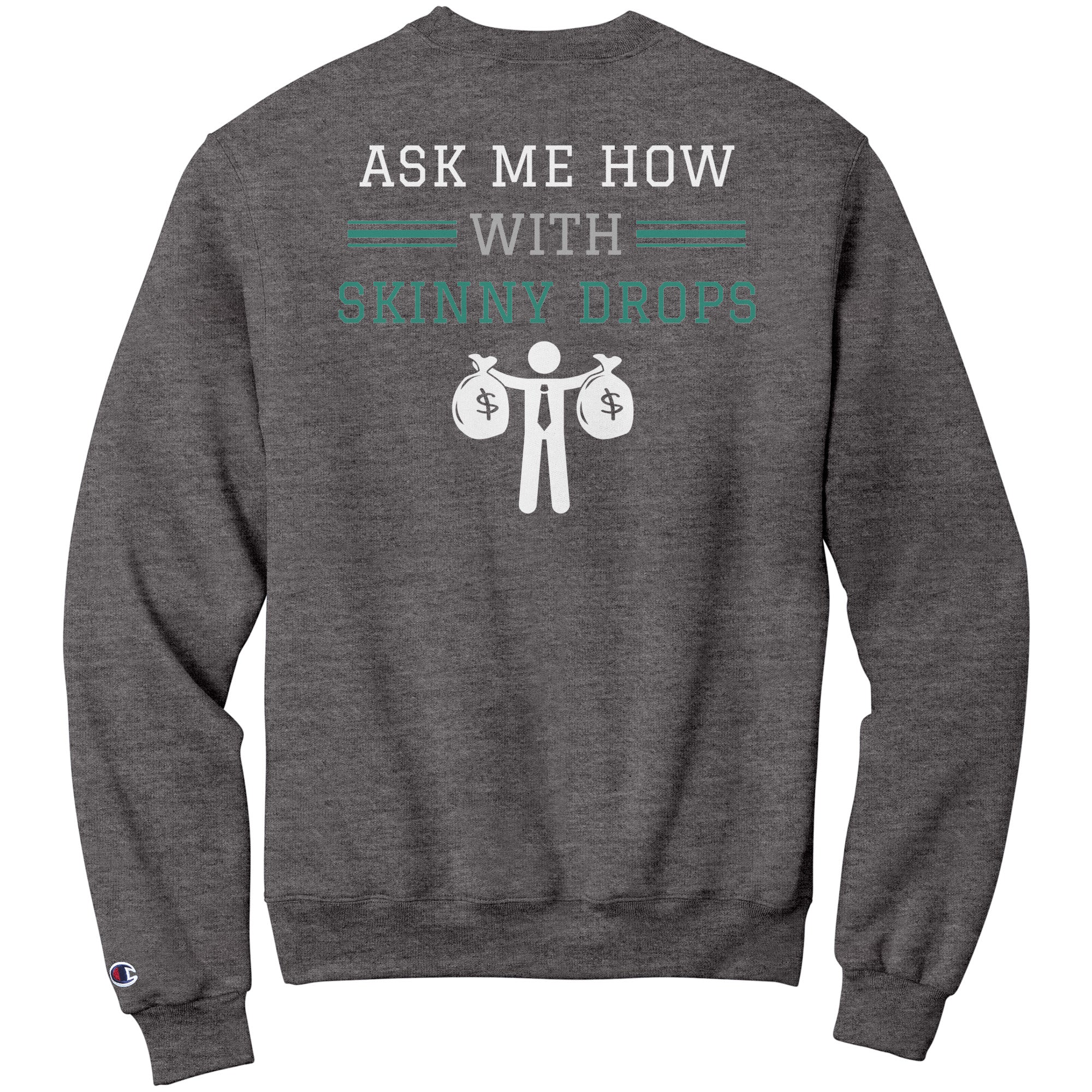 Partner.Co | Losing Weight and Making Bank Green Man Logo Back / Ask Me How with Skinny Drops Women Logo| Sweatshirt
